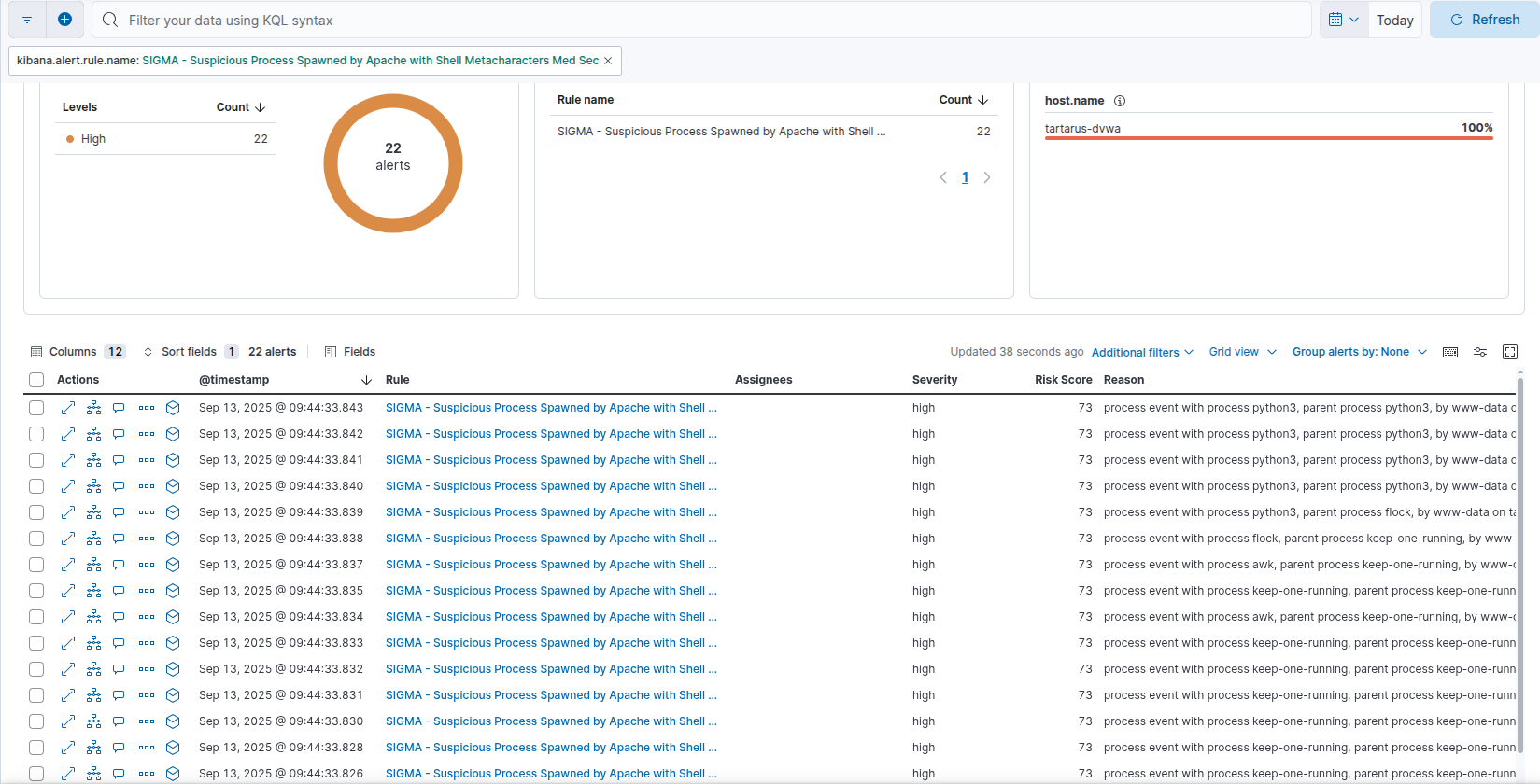Now we can also update the rule Suspicious Process Spawned by Apache with Shell Metacharacters: