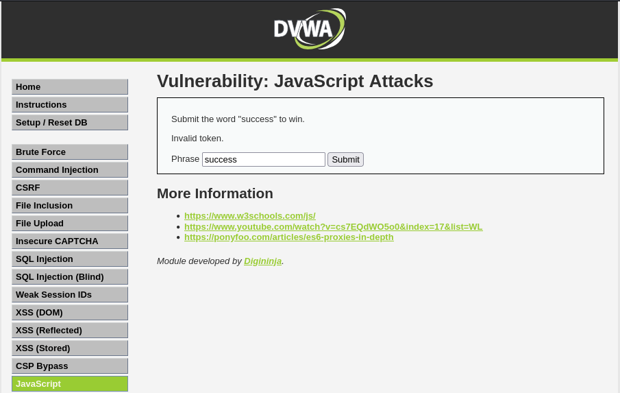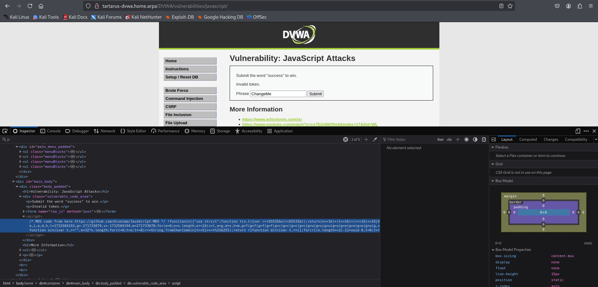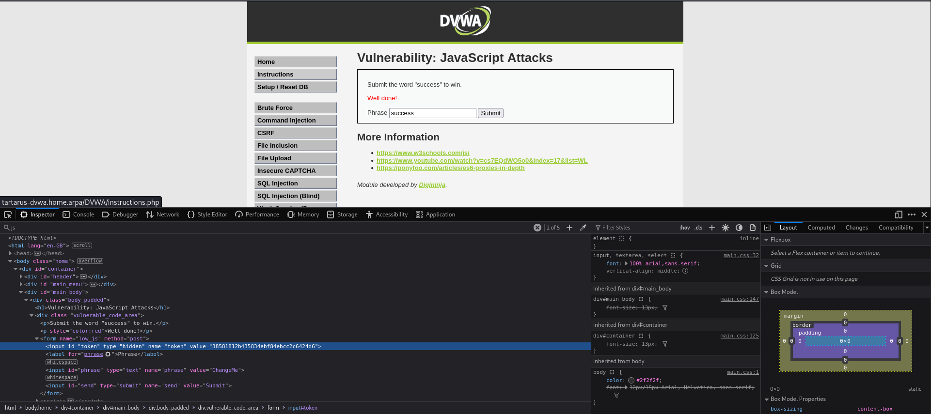 This blog post explains how to decode obfuscated JavaScript in the DVWA on Low Security. I propose a heuristic for when you are presented with unknown code - start from the bottom and work your way up. With this heuristic and CyberChef I’ve successfully reverse engineered AES encrypted payloads. If you want to further test your understanding I’ve written a payload encoder/decoder on my GitHub.