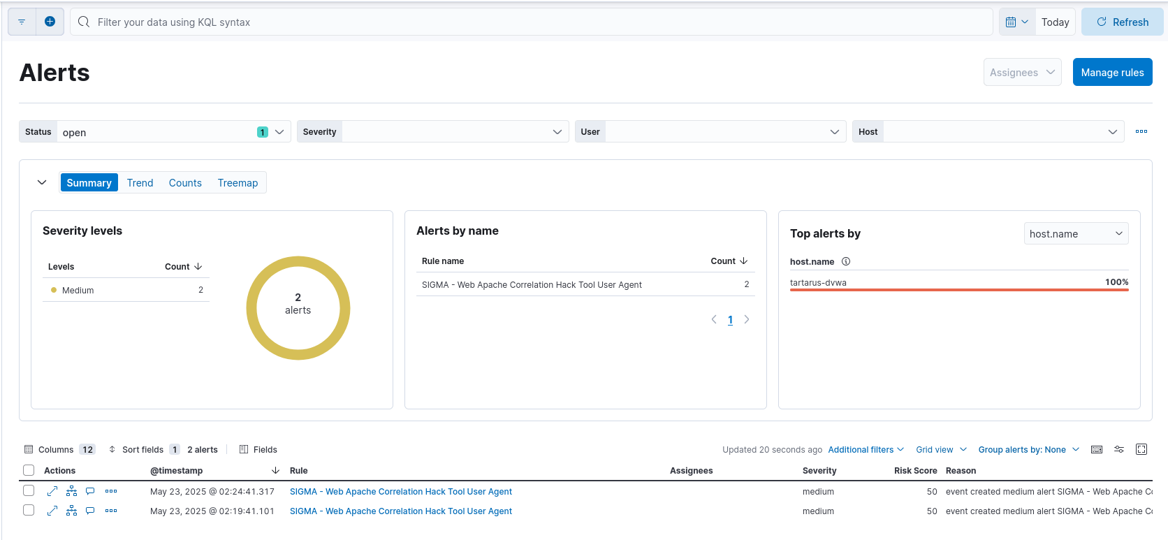 DVWA nuclei test alerts in elastic