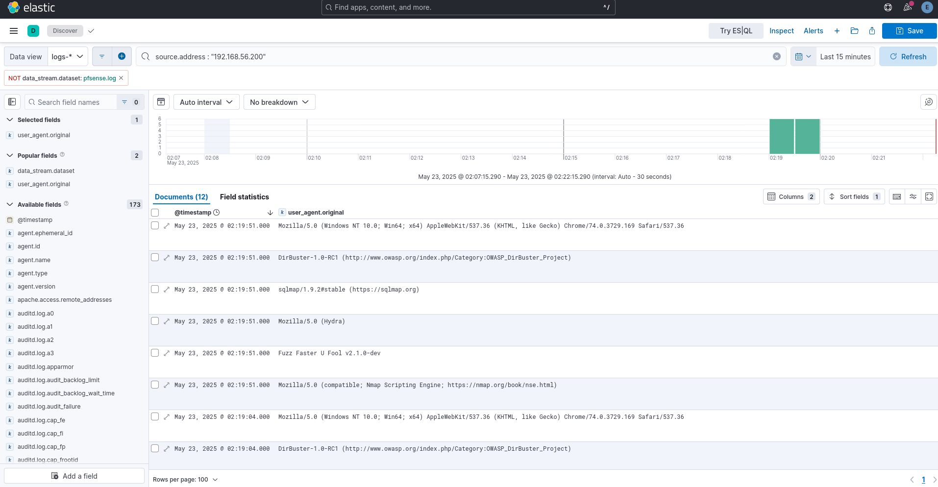 We will focus for now on the “Web Apache Correlation Hack Tool User Agent” rule, which is looking for suspicious browser User-Agents: