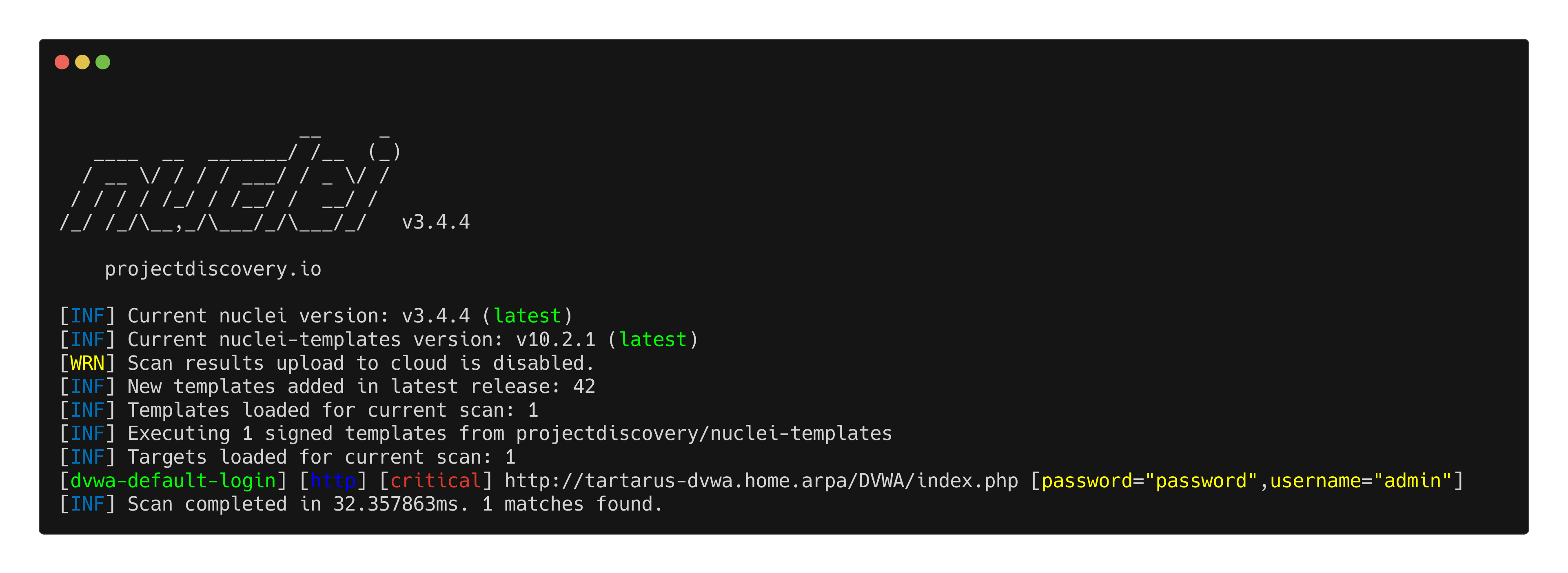 nuclei -u http://tartarus-dvwa.home.arpa/ -t /vagrant/nuclei-templates/dvwa/web-hack-tool-ua-enum-simulated.yaml