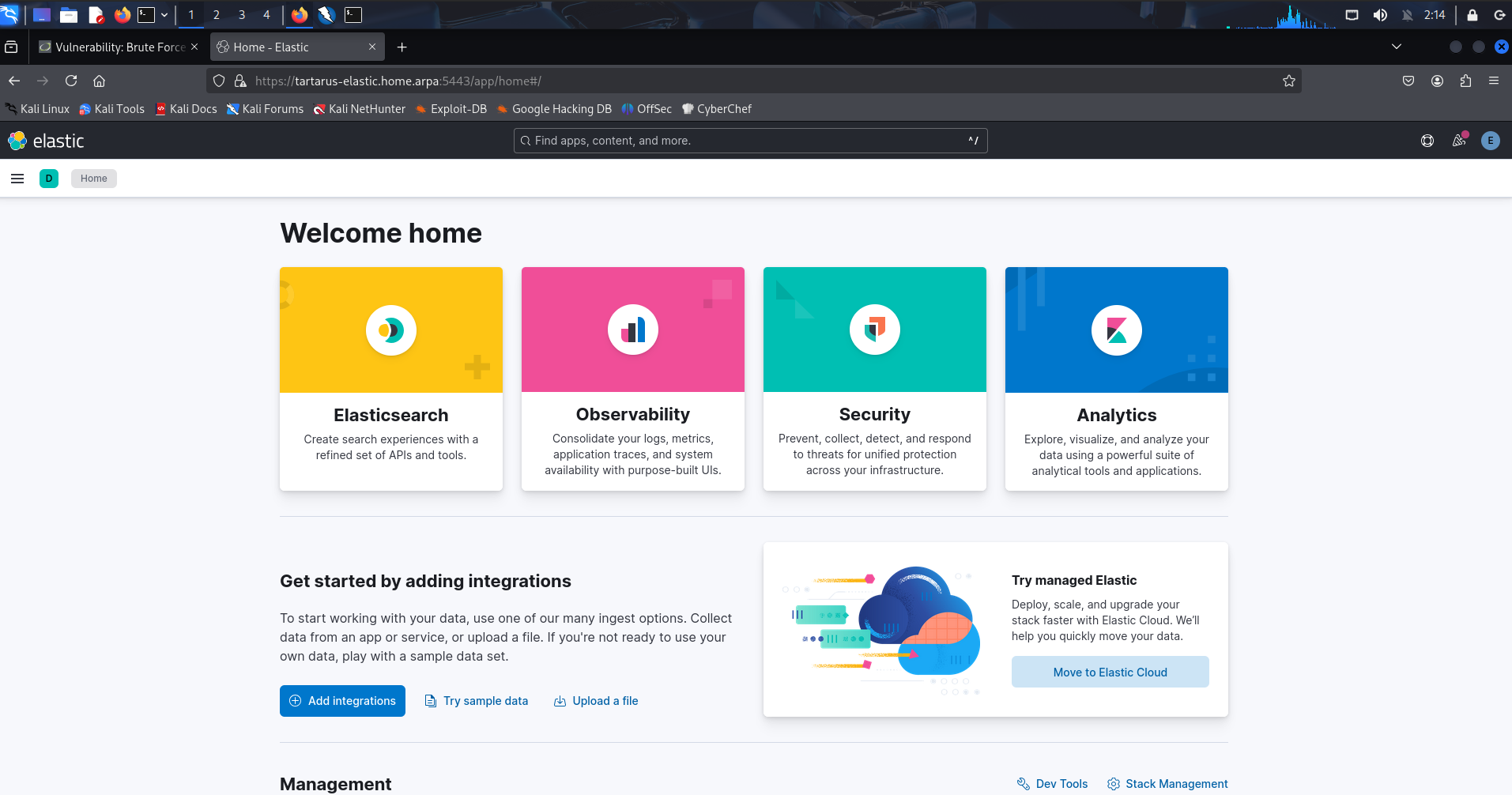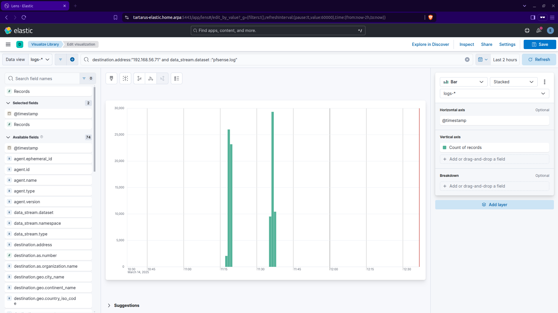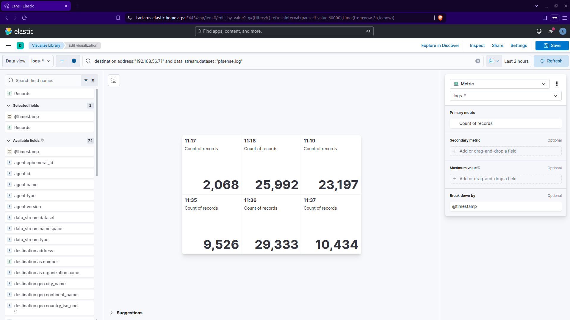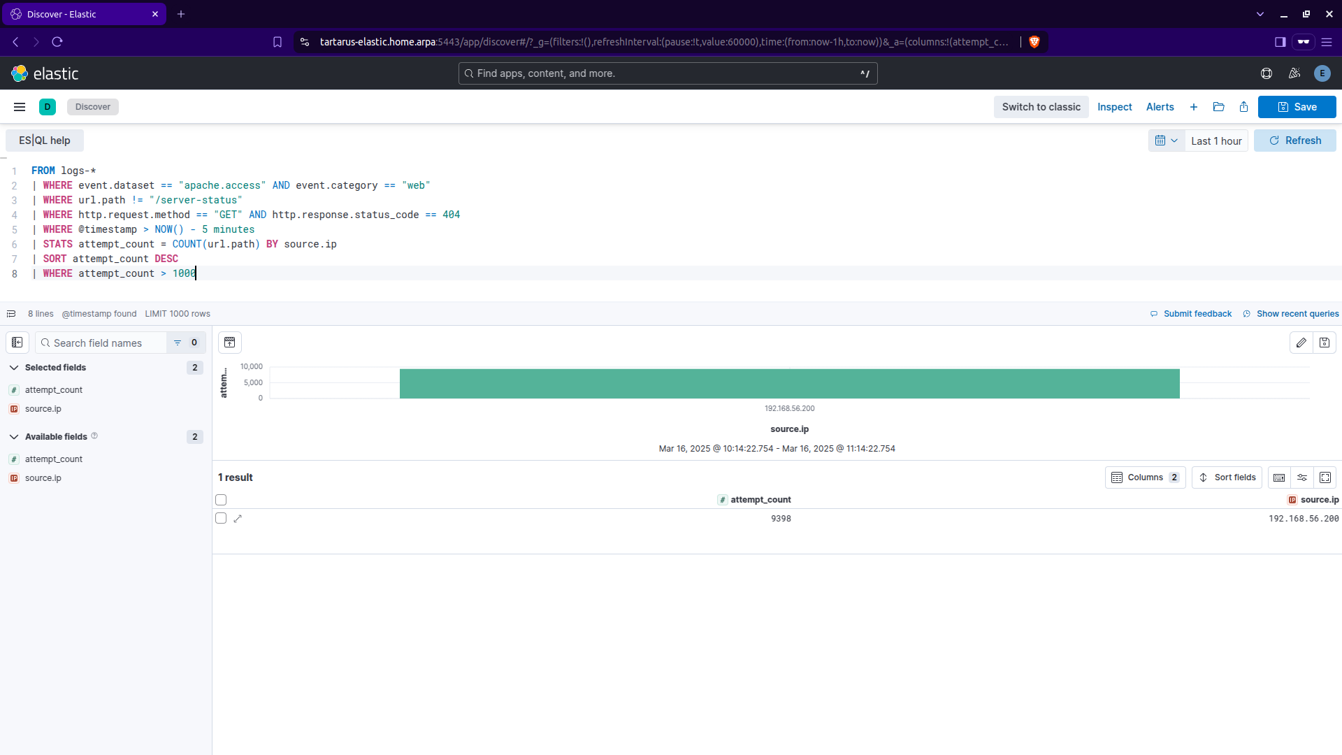 In the Kibana browser go to the Discover tab to view what’s happened. https://tartarus-elastic.home.arpa:5443/app/discover#/
