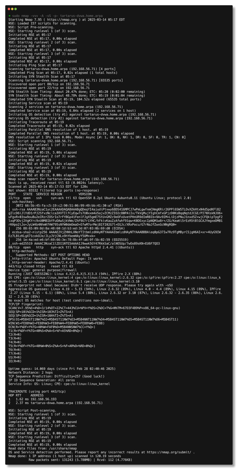 sudo nmap -vvv -A -sS -p- tartarus-dvwa.home.arpa