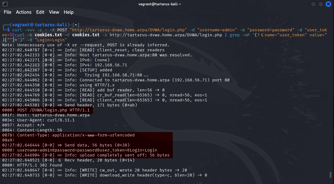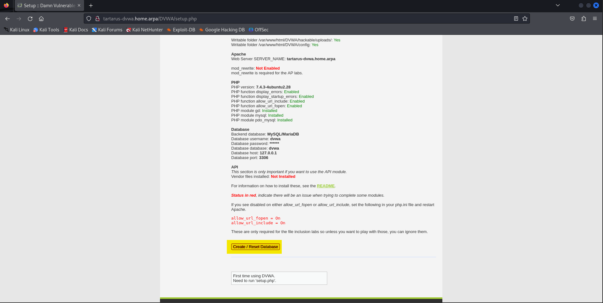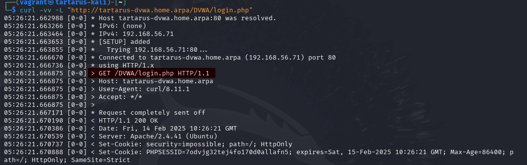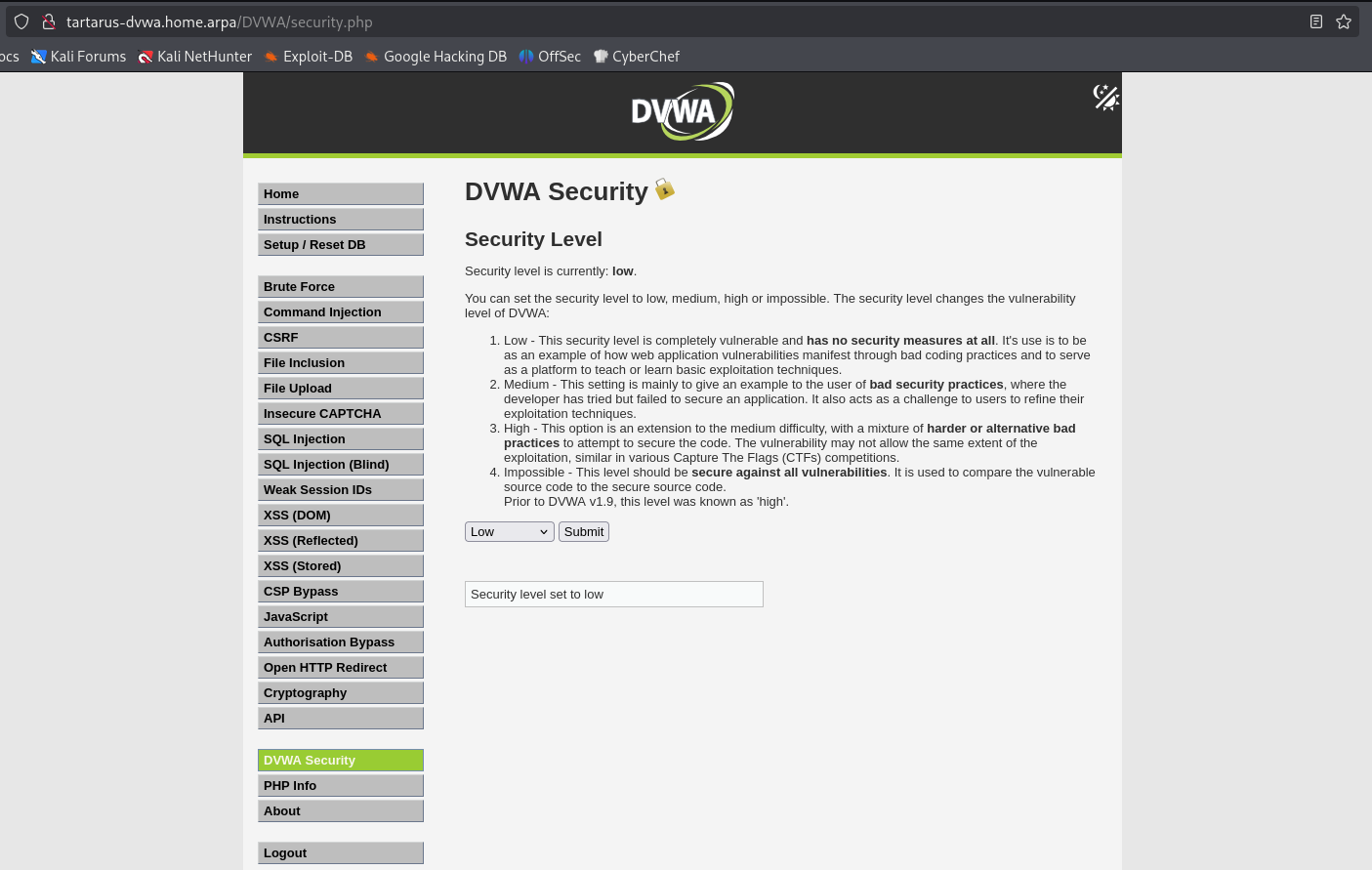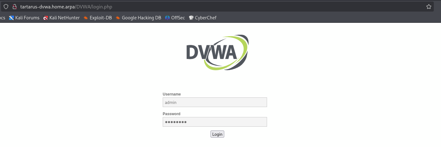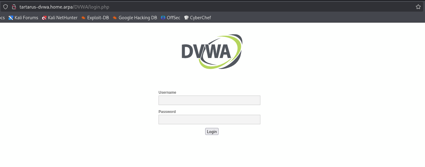 1 sudo bash -c "echo '<TARGET_IP_ADDR> tartarus-dvwa.home.arpa' >> /etc/hosts"