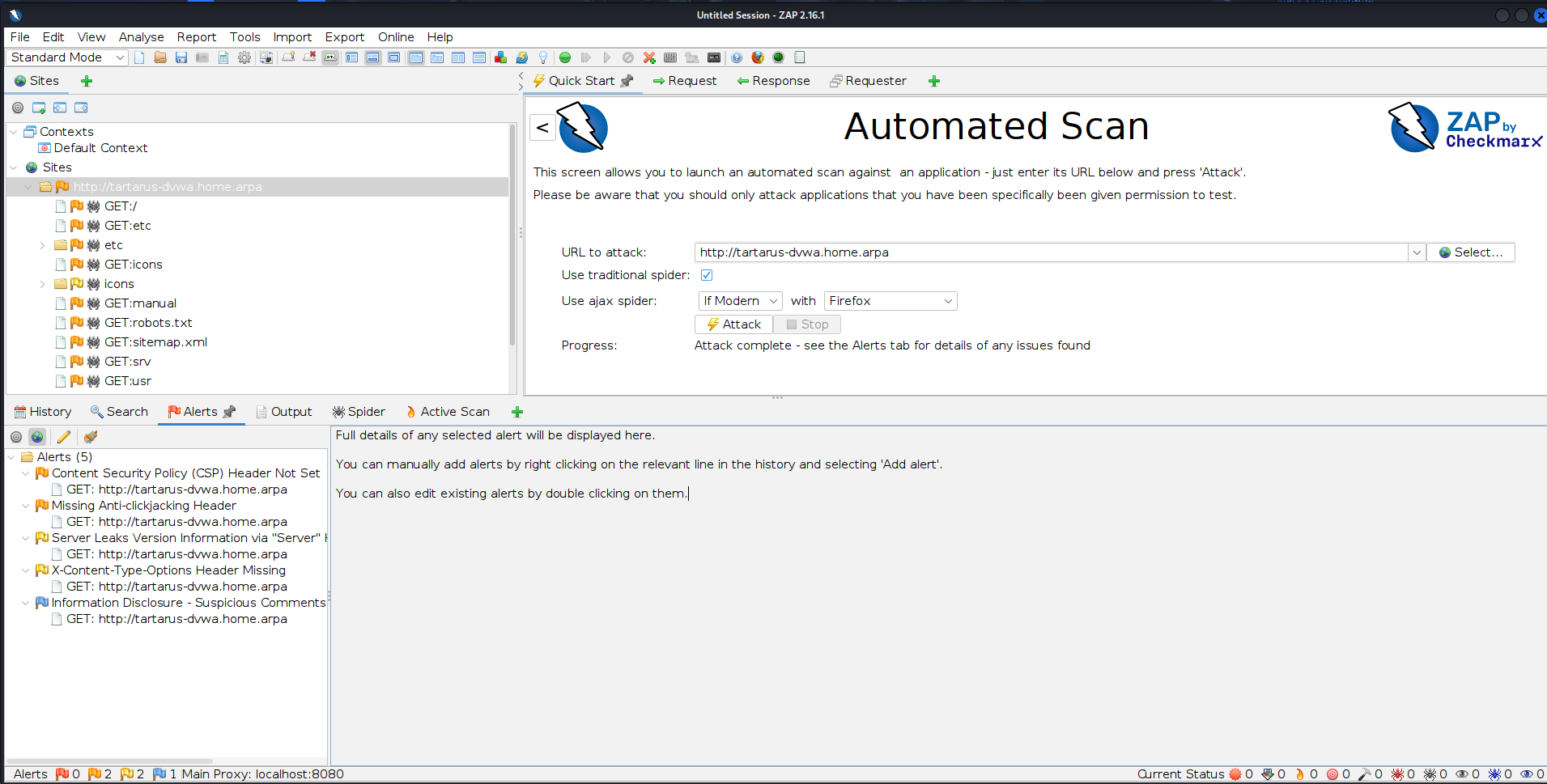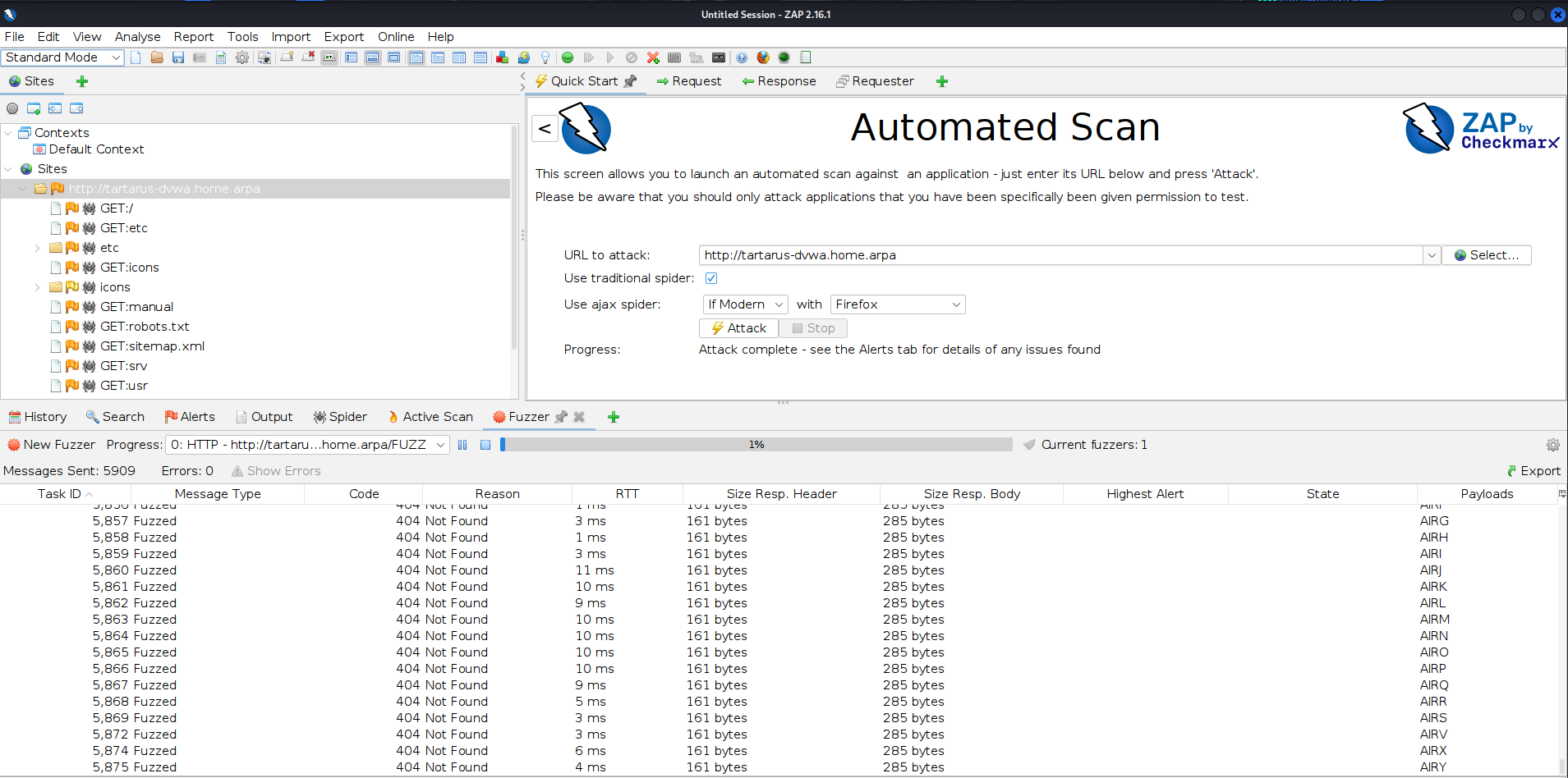 Select the “Automated Scan” underneath “Welcome” input the target and click on “Attack”: