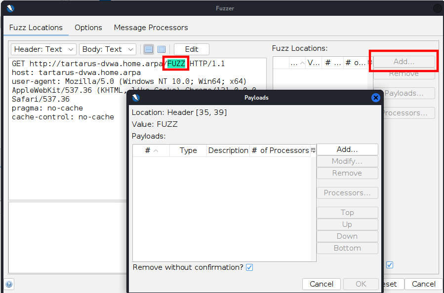 In the “Sites” window right click on the target and select “Attack -> Fuzz”: