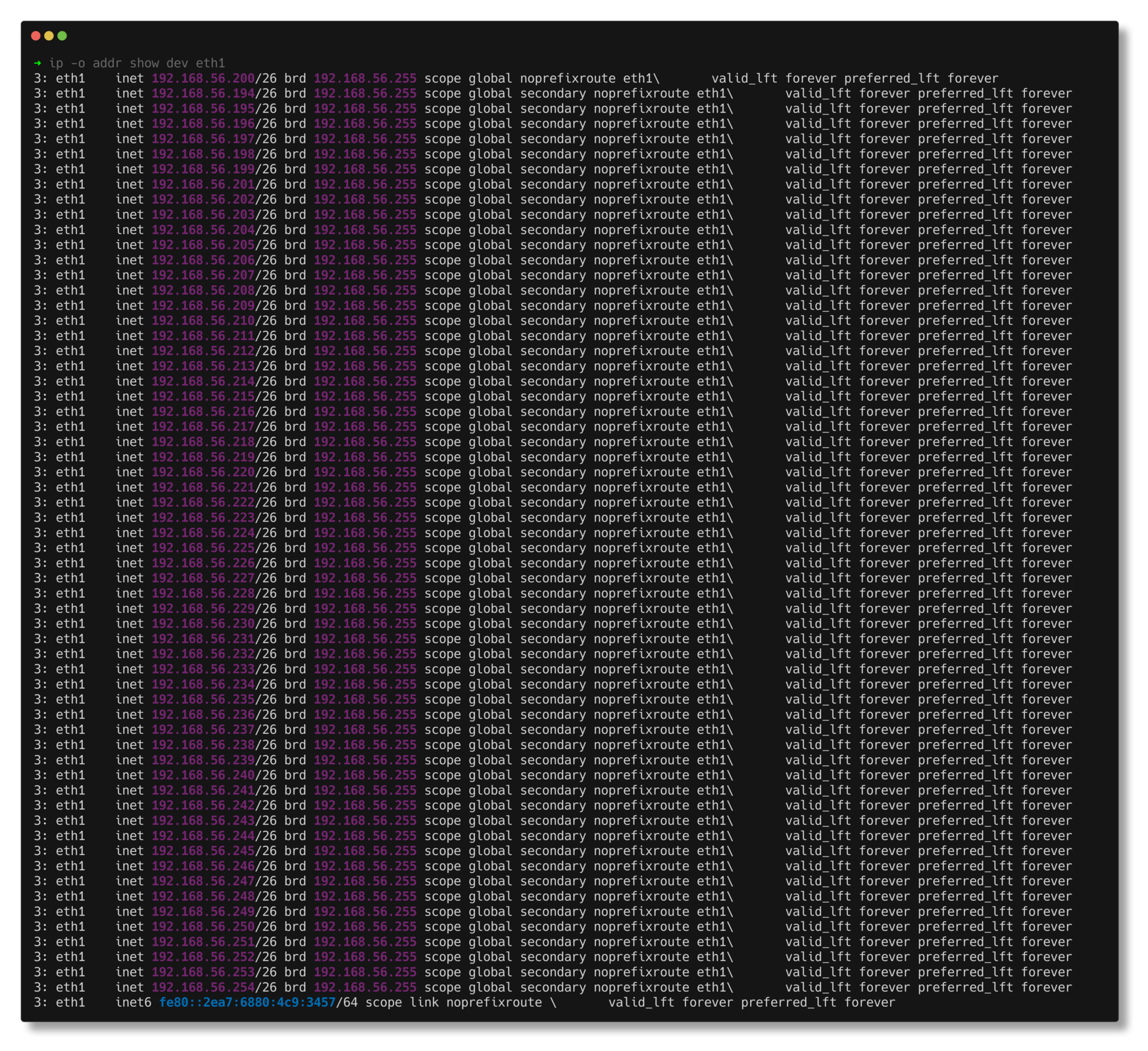 nmcli connection add type ethernet con-name "$CON_NAME" ifname "$INTERFACE" ip4 "$SUBNET_BASE.$EXCLUDE_IP/26" gw4 192.168.56.193
