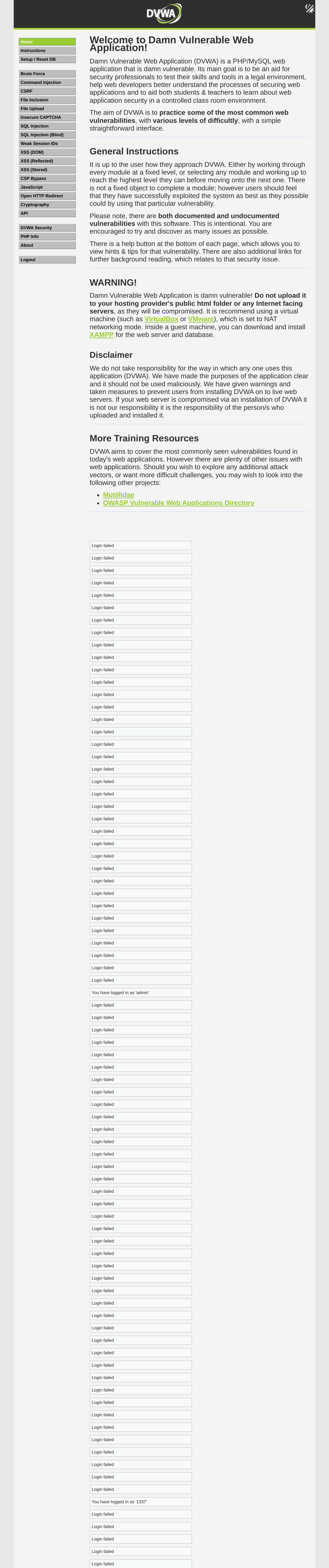If you don’t currently have a Damn Vulnerable Web Application (DVWA) instance you can follow along at home with a simple git clone & vagrant up if your host system meets the minimum specs.