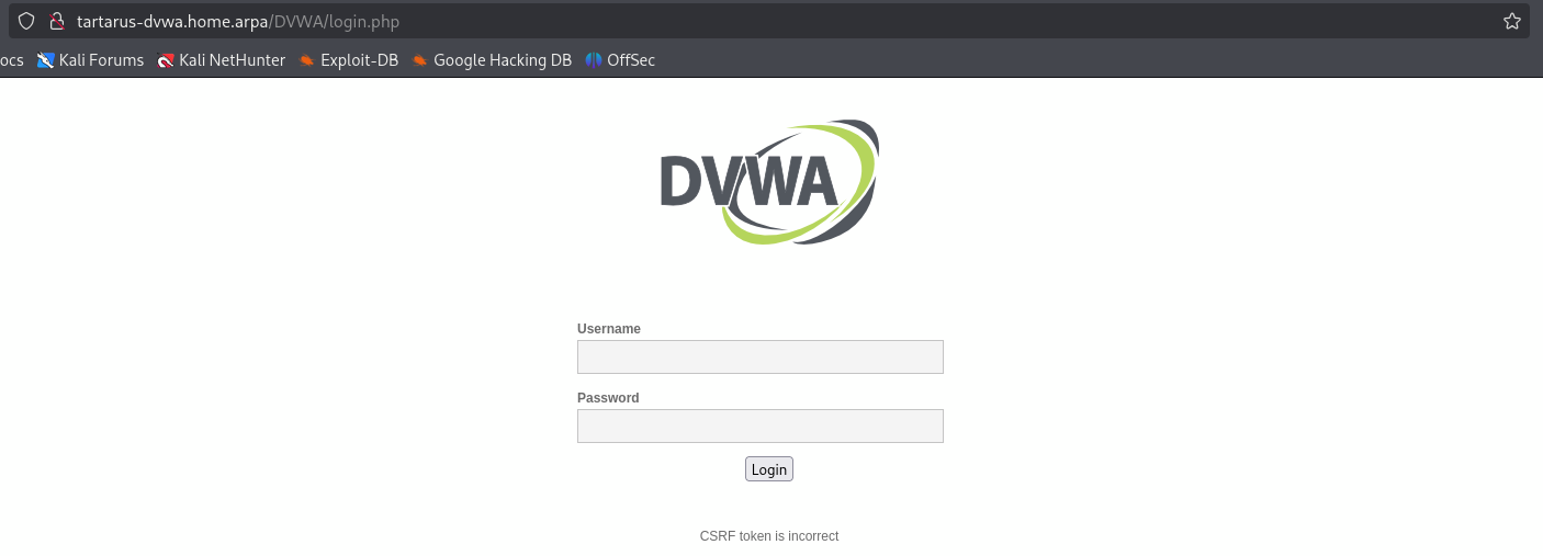 1 sudo bash -c "echo '<TARGET_IP> tartarus-dvwa.home.arpa' >> /etc/hosts"