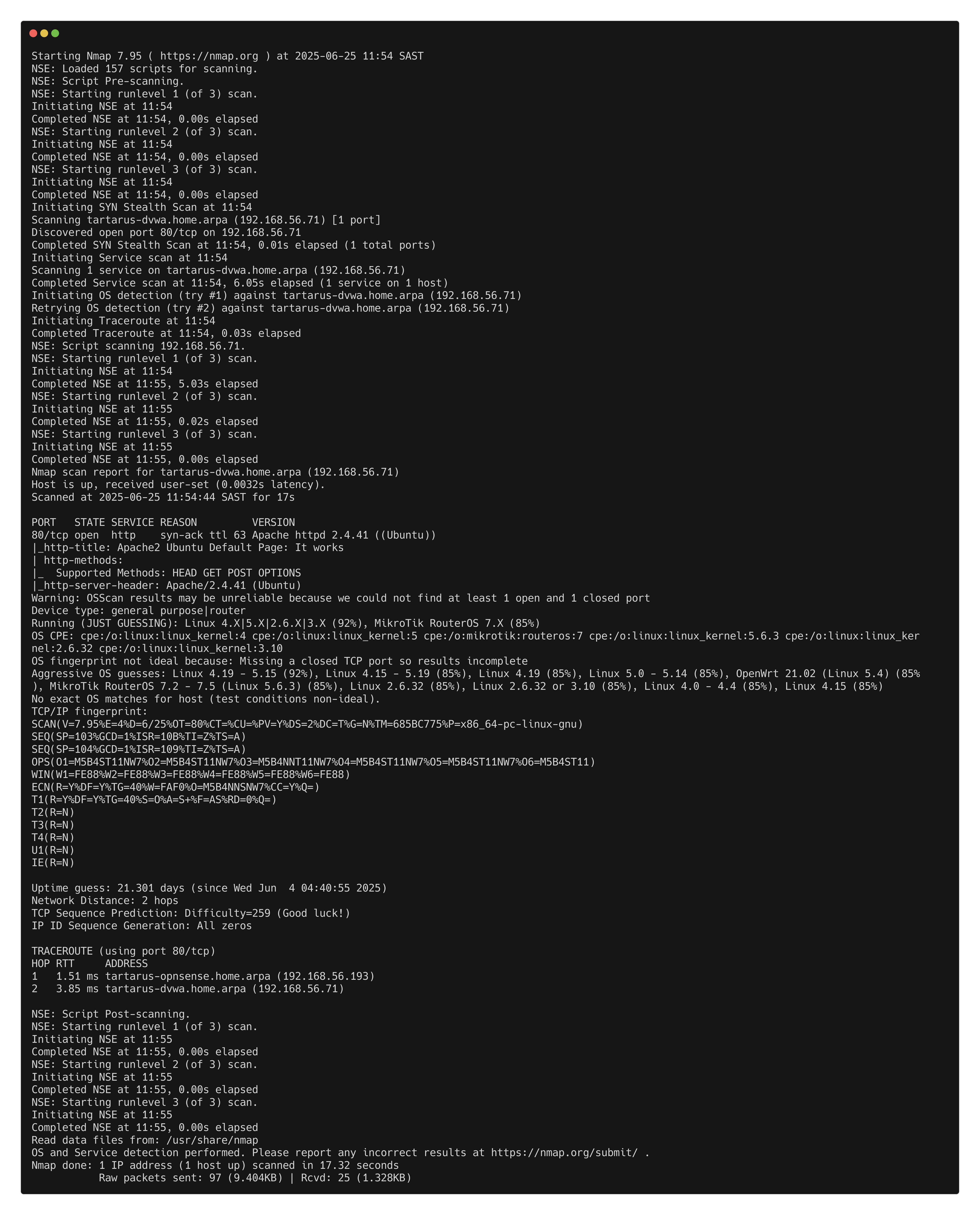 sudo nmap -vvv -A -sS -p- tartarus-dvwa.home.arpa