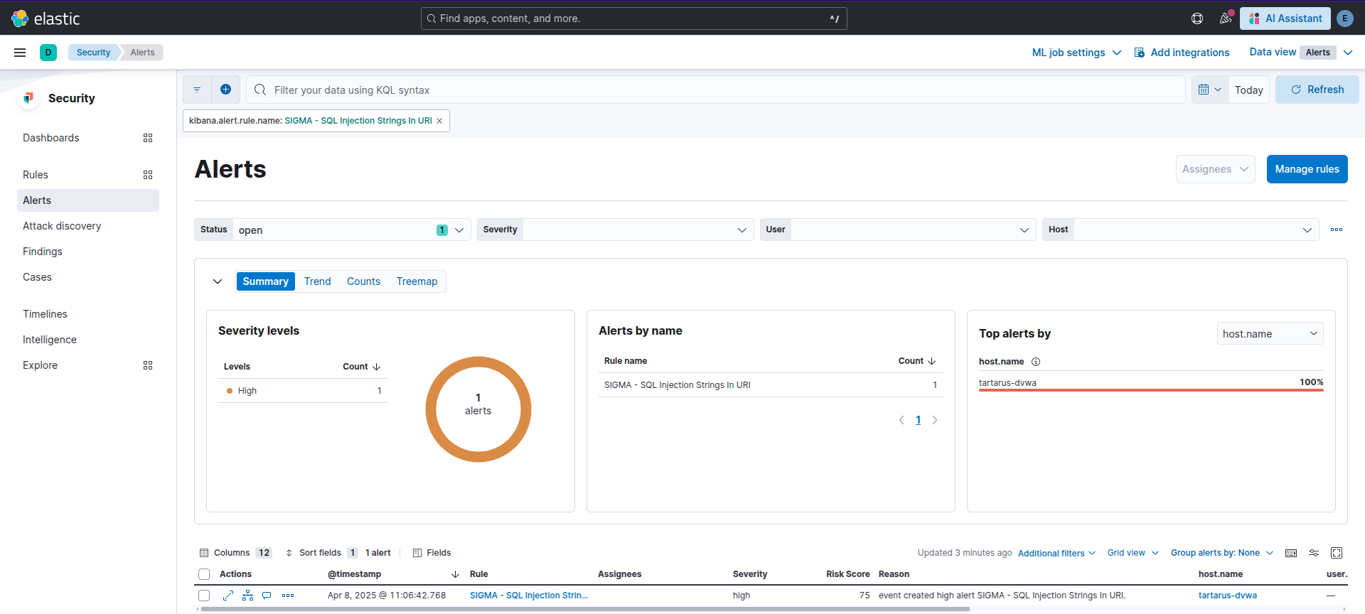 Example kibana alert to detect sqli