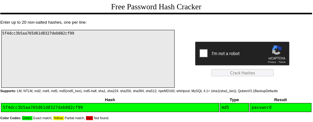 Example sqli md5 hash on crackstation