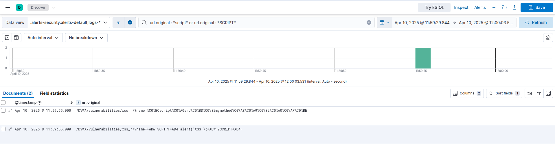 192.168.56.200 - - [10/Apr/2025:09:59:55 +0000] "GET /DVWA/vulnerabilities/xss_r/?name=<IMG SRC=javascript:alert("XSS")>" 400 483 "-" "-"